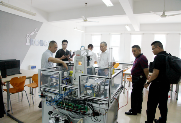在馮小平院長的陪同下,劉國富副廳長一行6人深入學(xué)院各主要實訓(xùn)中心、精益培訓(xùn)中心、創(chuàng)意室進(jìn)行實地考察,同時重點了解學(xué)院發(fā)展規(guī)劃、專業(yè)建設(shè)、教學(xué)、招生與就業(yè)、校