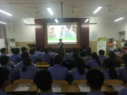 施奈德電氣設(shè)備工程(西安)有限公司人力資源部負(fù)責(zé)人向?qū)W生介紹企業(yè)