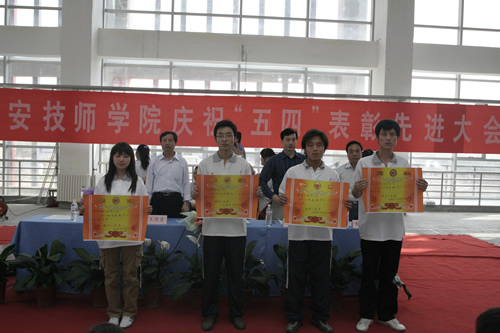 大會在莊嚴(yán)的國歌聲中拉開了帷幕。院長李長江,副院長王德意、賀惠民,黨委副書記紀(jì)委書記袁建章,及各系部主任出席大會,各級團(tuán)組織負(fù)責(zé)人、各類獲獎學(xué)生1200余人參加大會,由學(xué)生工作部部長劉雅萍主持大會。會上青年學(xué)子送上鮮花感謝領(lǐng)導(dǎo)對青年工作的支持。袁建章書記和賀惠民副院長分別宣讀《共青團(tuán)西安技師學(xué)院委員會關(guān)于表彰2008年先進(jìn)集體及先進(jìn)個人的決定》、《西安技師學(xué)院關(guān)于表彰2008-2009學(xué)年度“三好學(xué)生”、“優(yōu)秀學(xué)生干部”的決定》,先進(jìn)團(tuán)支部、優(yōu)秀團(tuán)干部、優(yōu)秀團(tuán)員、學(xué)雷鋒標(biāo)兵、三好學(xué)生、優(yōu)秀學(xué)生干部代表分別上臺領(lǐng)獎,院領(lǐng)導(dǎo)、各系部主任為他們頒發(fā)了獎狀及獎品。頒獎結(jié)束后,機(jī)械工程系康亞蒙同學(xué)代表受表彰學(xué)生在大會上作了“立志學(xué)習(xí),回報學(xué)校,弘揚(yáng)五四精神”的發(fā)言。