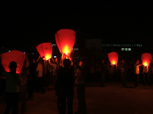 有的同學(xué)手捧寄托哀思的孔明燈,虔誠的放飛,給逝者送去祝福,并激勵生者,珍惜生命,奮發(fā)上進;