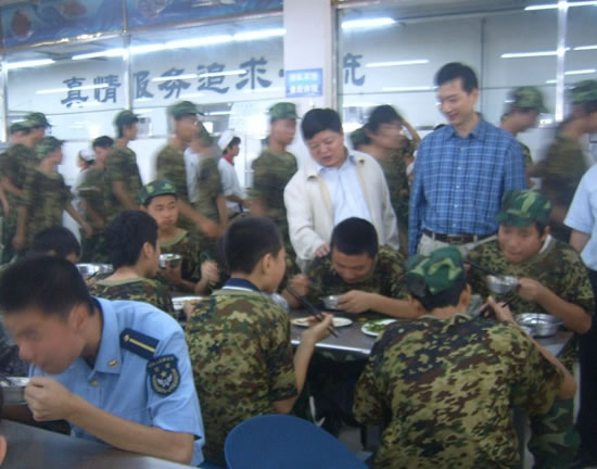 李院長(zhǎng)與賀副院長(zhǎng)親切慰問(wèn)正在就餐的學(xué)生