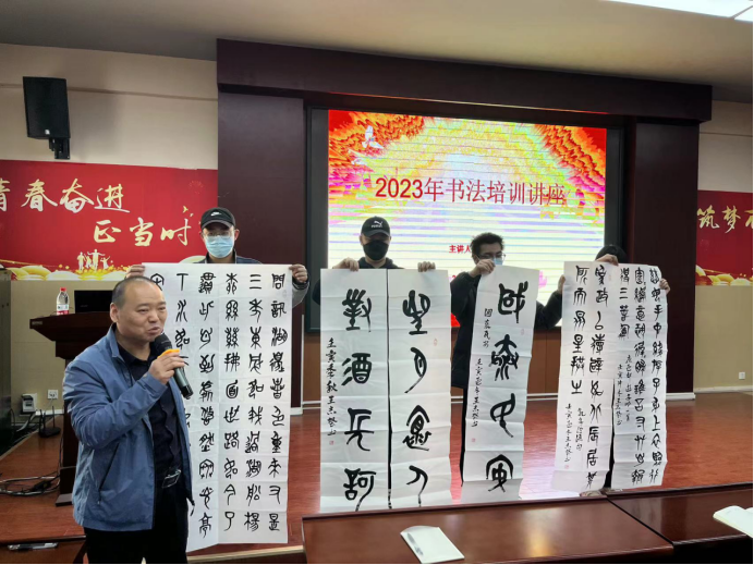 王志堅(jiān)老師細(xì)致講解了我國(guó)書(shū)法的演變過(guò)程(甲骨文、金文、大篆、小篆、隸書(shū),草書(shū)、楷書(shū)、行書(shū)諸體),讓學(xué)生更直觀形象地認(rèn)識(shí)了解不同歷史時(shí)期的書(shū)法藝術(shù),感受傳統(tǒng)文化的獨(dú)特魅力。
