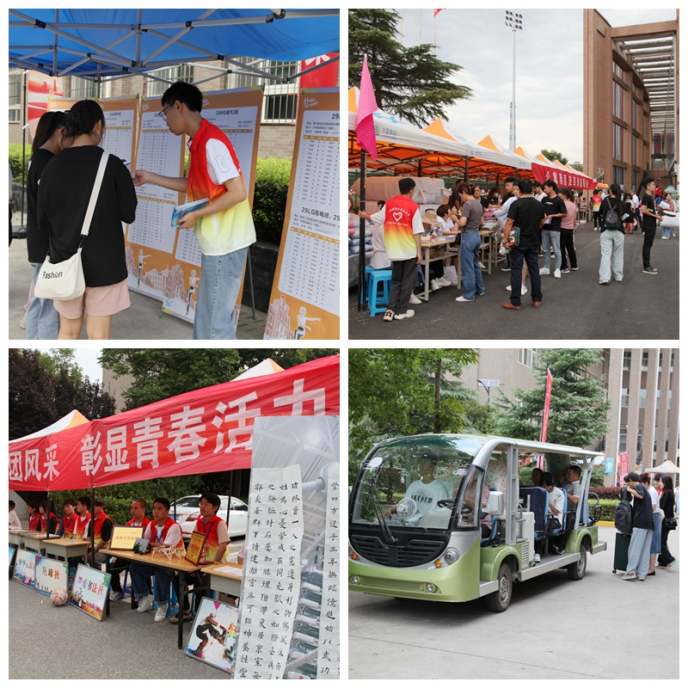 校園里迎新橫幅高懸、彩旗飄飄,各類迎新標語鮮亮醒目,溫馨熱鬧;工作人員和志愿者在校園各入口、志愿者服務點、各系新生報到處等服務站點為新生及家長耐心細致進行入學報到流程講解、悉心引導。