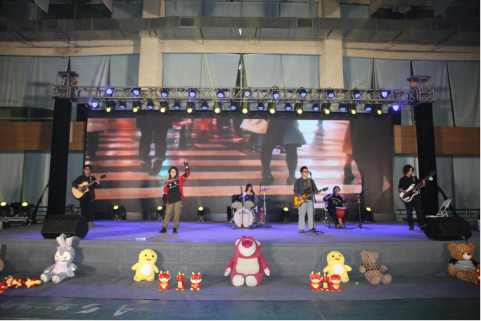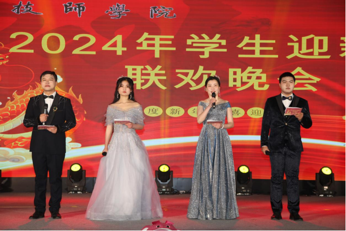 本場晚會由現(xiàn)代服務(wù)系表演的開場舞《龍騰虎躍鬧新春》拉開帷幕。