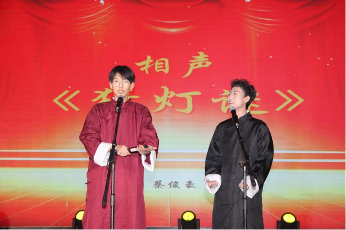 學(xué)生相聲社團(tuán)表演的對口相聲《猜燈謎》詼諧幽默,引得現(xiàn)場觀眾捧腹大笑。