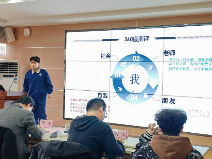 比賽現(xiàn)場(chǎng),評(píng)委結(jié)合選手提交的職業(yè)生涯發(fā)展報(bào)告、個(gè)人簡(jiǎn)歷、現(xiàn)場(chǎng)展示情況進(jìn)行提問(wèn),選手答辯后,評(píng)委進(jìn)行綜合打分。在點(diǎn)評(píng)過(guò)程中,評(píng)委為同學(xué)們指出了比賽中存在的問(wèn)題,鼓勵(lì)同學(xué)們賽后跟隨指導(dǎo)老師繼續(xù)認(rèn)真修改作品,不斷自我完善,努力提升就業(yè)能力。