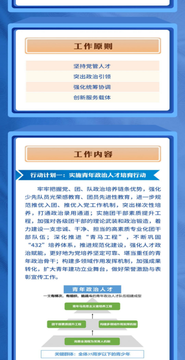為深入貫徹習(xí)近平總書(shū)記在慶祝中國(guó)共產(chǎn)主義青年團(tuán)成立100周年大會(huì)上的重要講話精神、習(xí)近平總書(shū)記關(guān)于做好新時(shí)代人才工作的重要思想和中央人才工作會(huì)議精神。近日,共青團(tuán)中央印發(fā)了《共青團(tuán)做好新時(shí)代青年人才培養(yǎng)工作的行動(dòng)計(jì)劃》,并發(fā)出通知,要求各省級(jí)團(tuán)委、各行業(yè)團(tuán)(工)委抓好貫徹落實(shí)。