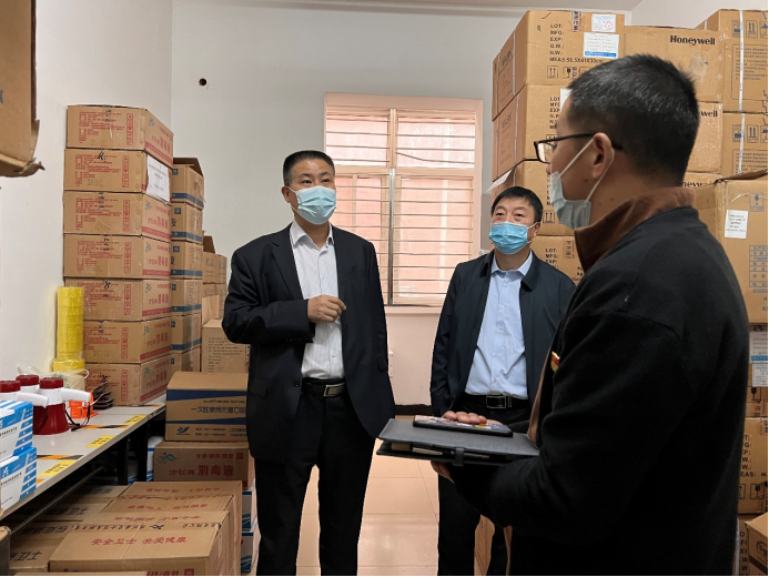 孫占亞副書記一行深入學(xué)院大門口、教學(xué)區(qū)、食堂、宿舍、防疫物資儲備室等重點場所,現(xiàn)場查看了校園疫情防控措施落實情況,詳細(xì)了解了疫情期間校園管理、應(yīng)急處置等情況,重點檢查了門衛(wèi)值勤、各系教學(xué)區(qū)防疫準(zhǔn)備、學(xué)院防疫物資儲備以及學(xué)生宿舍消殺等,對存在的問題進(jìn)行了現(xiàn)場反饋,并就疫情防控工作提出具體要求。