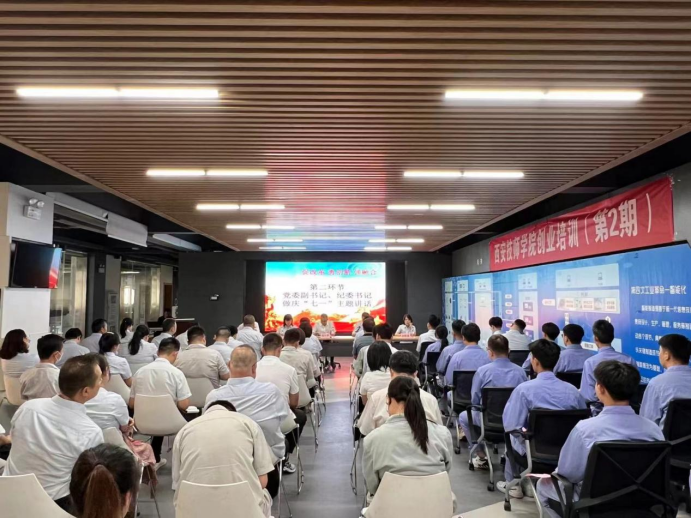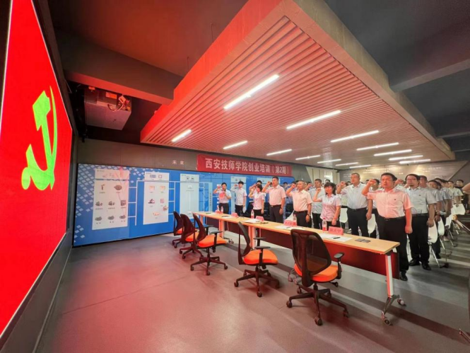 為慶祝中國共產(chǎn)黨成立101周年,宣傳黨的光輝歷程和豐功偉績,激勵廣大黨員干部積極投身學(xué)院改革和建設(shè),加快學(xué)院高質(zhì)量發(fā)展,以優(yōu)異成績迎接黨的二十大勝利召開,2022年6月30日下午,西安技師學(xué)院黨委在智能制造中心大廳舉行慶“七一”主題黨日活動暨黨委書記講黨課活動,學(xué)院領(lǐng)導(dǎo)班子成員、中層干部、黨支部書記、支部委員、各部門主管以及2022年新發(fā)展黨員參加了本次活動?;顒佑蓪W(xué)院黨委黨委委員、副院長張大寧主持。