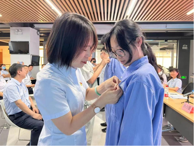 新黨員代表魏嘯桐代表全體新入黨的預(yù)備黨員進(jìn)行了表態(tài)發(fā)言。他表示,今后一是要牢記宗旨,不僅在組織上入黨,更要在思想上入黨;二是要積極發(fā)揮黨員先鋒模范作用,始終保持奮發(fā)有為的形象、奮力爭先的姿態(tài)、奮勇向前的氣魄,投入到今后的工作和學(xué)習(xí)中來。隨后,在場的老黨員代表為新黨員佩戴、配發(fā)黨徽。