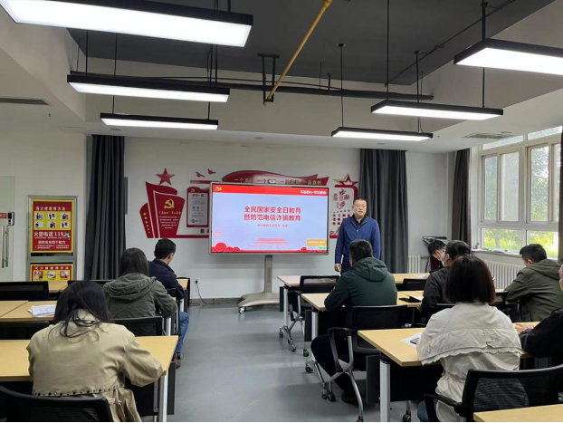 4月14日,在第八個全民國家安全教育日到來之際,現(xiàn)代服務(wù)系對全體黨員、班主任開展全民國家安全教育日暨防范電信詐騙主題教育。現(xiàn)代服務(wù)系黨支部書記高健同志主講。