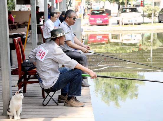 選手們擺好架勢(shì)開始釣魚