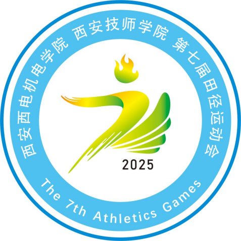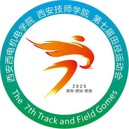 圓環(huán)處,“西安技師學(xué)院西電機電學(xué)院第七屆田徑運動會”字樣清晰環(huán)繞,明確賽事歸屬與屆別;下方“2025”數(shù)字標(biāo)注,定格專屬記憶,賦予會徽獨特紀念意義。整個會徽融合運動激情、科技質(zhì)感與紀念價值,生動詮釋賽事精神內(nèi)核。
