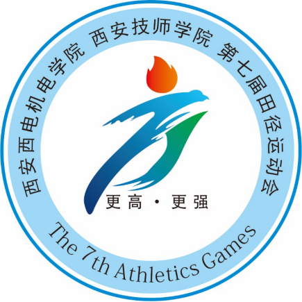 外圍雙圓環(huán)文字設(shè)計兼具功能性與文化性。中文“西安西電機電學(xué)院西安技師學(xué)院第七屆田徑運動會” 與英文 “The 7th Track and Field Games”,清晰界定活動的主體屬性與屆次,強化師生對校園活動的歸屬感與紀念意義,也體現(xiàn)學(xué)校對國際化表達的融合。