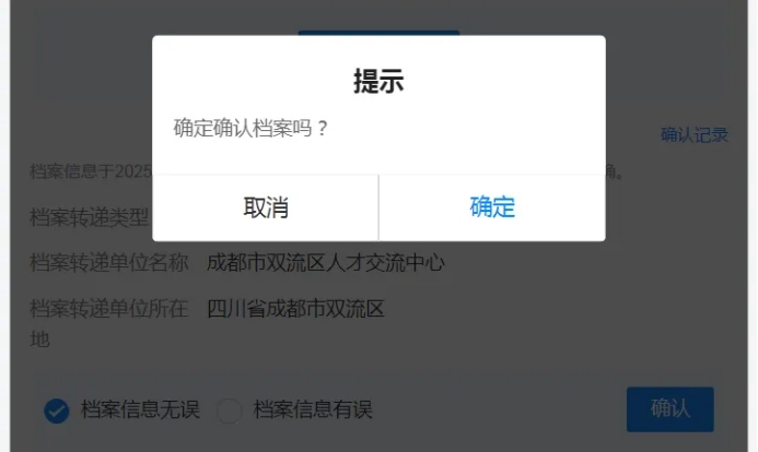 確認(rèn)檔案信息無(wú)誤,則勾選“檔案信息無(wú)誤”,點(diǎn)擊“確認(rèn)”。