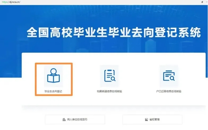根據(jù)《教育部辦公廳關(guān)于建立高校畢業(yè)生畢業(yè)去向登記制度的通知》教學(xué)廳〔2023〕5號(hào)文件精神,畢業(yè)生(含結(jié)業(yè)生)需在全國(guó)登記系統(tǒng)進(jìn)行畢業(yè)去向登記確認(rèn)及核驗(yàn)。該環(huán)節(jié)將影響后續(xù)畢業(yè)生簽約、轉(zhuǎn)檔、落戶,請(qǐng)務(wù)必仔細(xì)核對(duì)確認(rèn)。操作流程請(qǐng)參照以下步驟進(jìn)行。