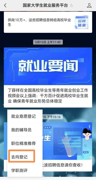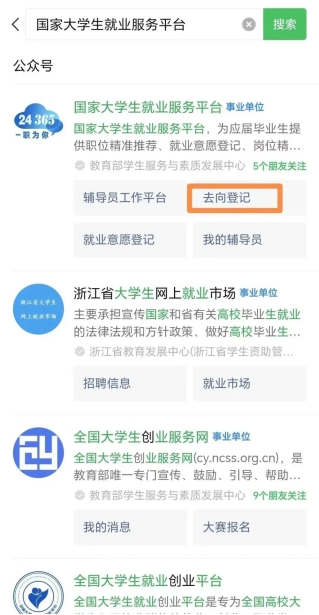 搜索“國(guó)家大學(xué)生就業(yè)服務(wù)平臺(tái)”微信公眾號(hào),選擇“去向登記”,或進(jìn)入公眾號(hào)點(diǎn)擊下方“畢業(yè)生”,選擇“去向登記”,使用學(xué)信網(wǎng)賬號(hào)、密碼登錄。提醒:微信登錄需要授權(quán)“使用完整服務(wù)”。