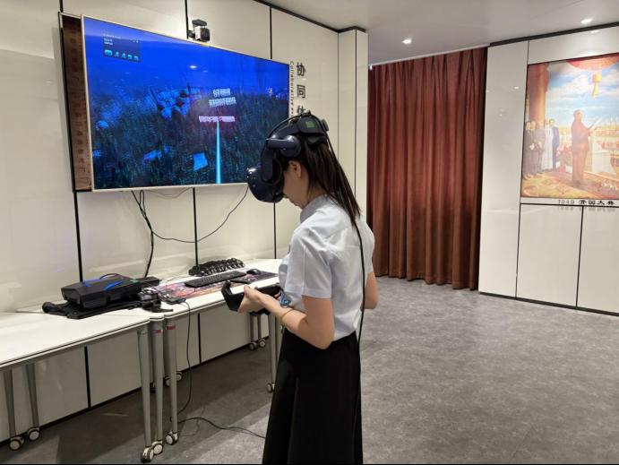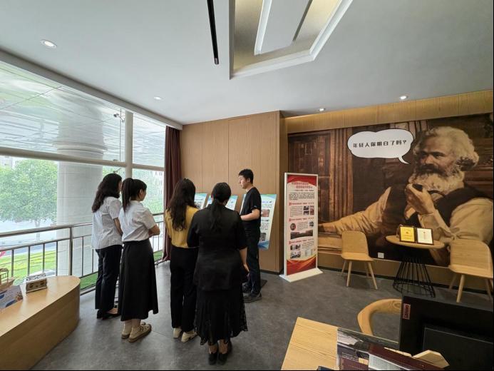在陜工職院馬克思主義學(xué)院實(shí)訓(xùn)中心主任陳杜昊的陪同下,西電機(jī)電學(xué)院教師參觀了學(xué)院的“智創(chuàng)思政工坊”“VR智慧思政實(shí)訓(xùn)中心”等特色教學(xué)場(chǎng)所。數(shù)字化展廳中,沉浸式黨史學(xué)習(xí)場(chǎng)景、智能化教學(xué)設(shè)備的應(yīng)用讓參觀教師直觀感受到科技與思政教育的深度融合,為創(chuàng)新教學(xué)形式提供了新思路。