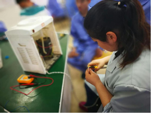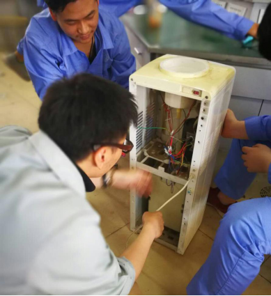 在整個(gè)維修過程中,同學(xué)們認(rèn)真聽老師講解,學(xué)習(xí)飲水機(jī)內(nèi)部電路的工作原理、維修時(shí)的診斷故障經(jīng)驗(yàn)和安全注意事項(xiàng)。認(rèn)真聽完理論知識(shí),隨后進(jìn)行實(shí)踐操作進(jìn)行維修。經(jīng)過一上午的努力,老師和同學(xué)們一起協(xié)作將30臺(tái)飲水機(jī)全部修理好,并且通電調(diào)試成功,保質(zhì)保量完成了這次任務(wù)!