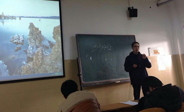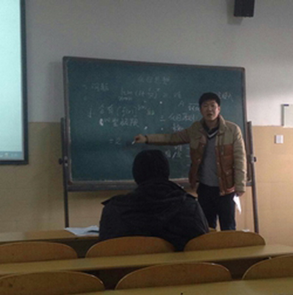 施偉斌老師在講“極限”。思維敏捷的施老師以熟練、嚴(yán)謹(jǐn)?shù)姆绞窖杆偻评沓銮蠼夥绞?,他巧妙的算法使學(xué)生在短短的2分鐘之內(nèi)能夠做出3道題。