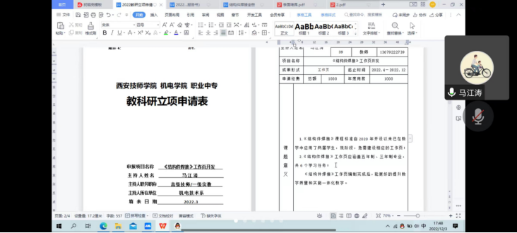 為加強(qiáng)教研管理,確保教研立項(xiàng)按時結(jié)題,提高教研立項(xiàng)質(zhì)量,2022年12月3日,機(jī)電技術(shù)系組織全體技能帶頭人、專業(yè)帶頭人及課程負(fù)責(zé)人開展2022年度教研立項(xiàng)評審工作。