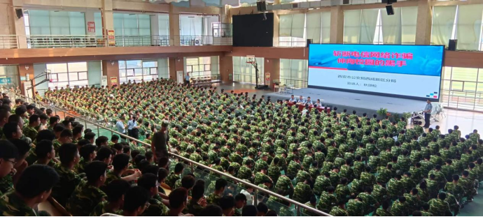 為了增強學(xué)生的法制觀念和校園安全意識,提高學(xué)生的自我保護能力,做到知法、守法,進一步營造“和諧校園,平安校園”的良好環(huán)境,8月29日下午,學(xué)院邀請西咸新區(qū)公安分局相關(guān)領(lǐng)導(dǎo)與警官,開展2023年新生反詐、禁毒普法宣傳活動?;顒釉谖捏w中心二樓舉行,共約1200百余名師生參加。