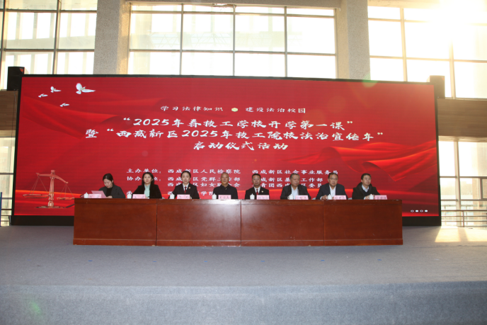 為進(jìn)一步加強(qiáng)技工院校法治宣傳教育,做好“開學(xué)第一課”,提高學(xué)生的法治素養(yǎng)和法律意識,共同推進(jìn)法治校園建設(shè),2月18日,“2025年春季技工學(xué)校開學(xué)第一課”暨西咸新區(qū)“檢潤職校、筑夢未來——法治宣傳年”活動在學(xué)院文體中心拉開帷幕。本次活動由西咸新區(qū)檢察院、西咸新區(qū)社會事業(yè)服務(wù)局主辦,西咸新區(qū)黨群工作部、西咸新區(qū)基層工作部、西咸新區(qū)婦女聯(lián)合會、共青團(tuán)西咸新區(qū)委員會協(xié)辦,學(xué)院承辦。