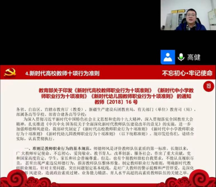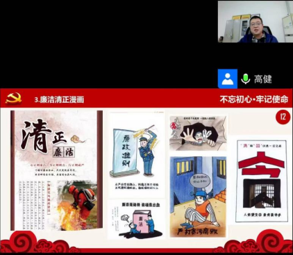 為慶祝中國(guó)共產(chǎn)黨第二十次全國(guó)代表大會(huì)勝利召開(kāi),營(yíng)造廉潔從教的文化氛圍,增強(qiáng)教師黨員廉潔自律意識(shí),加大黨風(fēng)廉政建設(shè)宣傳教育力度。2022年10月25日下午,現(xiàn)代服務(wù)系黨支部組織全體黨員及入黨積極分子利用騰訊會(huì)議開(kāi)展以“學(xué)習(xí)中國(guó)共產(chǎn)黨第二十次全國(guó)代表大會(huì)暨廉潔文化”為主題的專題黨課教育活動(dòng)。